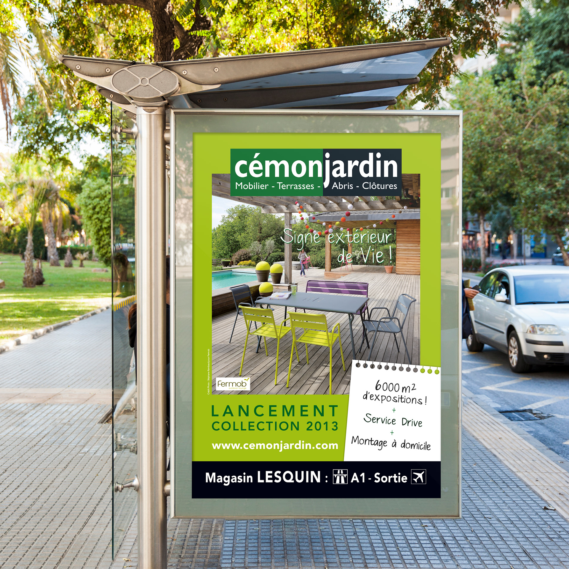 Création de la charte graphique et affiches abribus et 4x3 pour promouvoir la sortie du catalogue de cette enseigne de magasin d'aménagement extérieur à Lesquin.