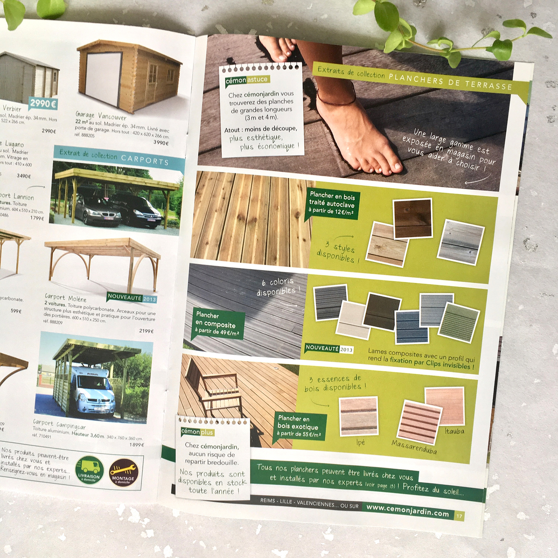 Refonte de la charte graphique et maquette du catalogue de cette enseigne de magasin d'aménagement extérieur à Lesquin.