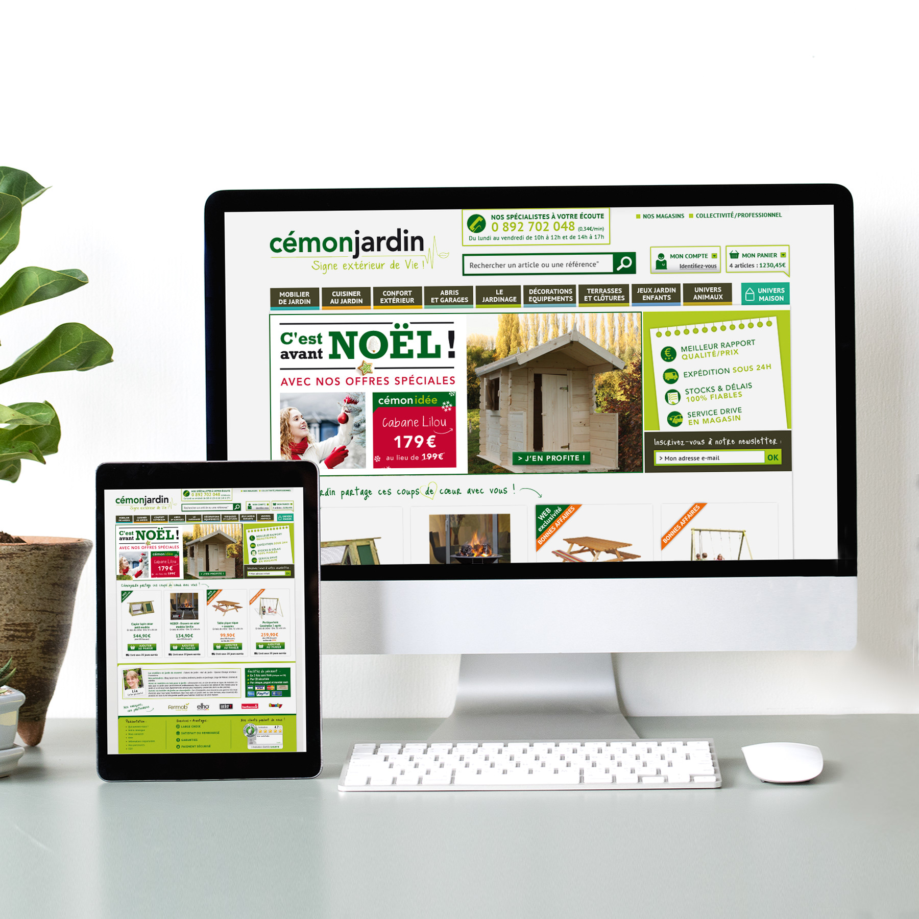 Création de la charte graphique du webdesign des emailings et des bannières web de cette enseigne de magasin d'aménagement extérieur à Lesquin.