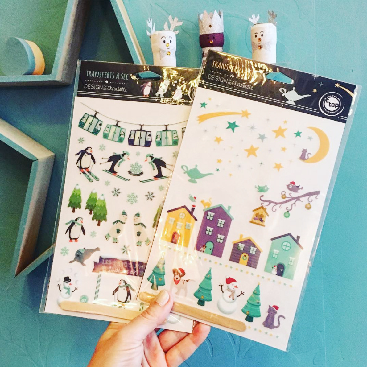 Création d'illustrations et packagings de transferts à sec pour Noël. Avec des illustrations impactantes pour attirer les enfants et donner envie aux parents de faire des loisirs créatifs en famille.