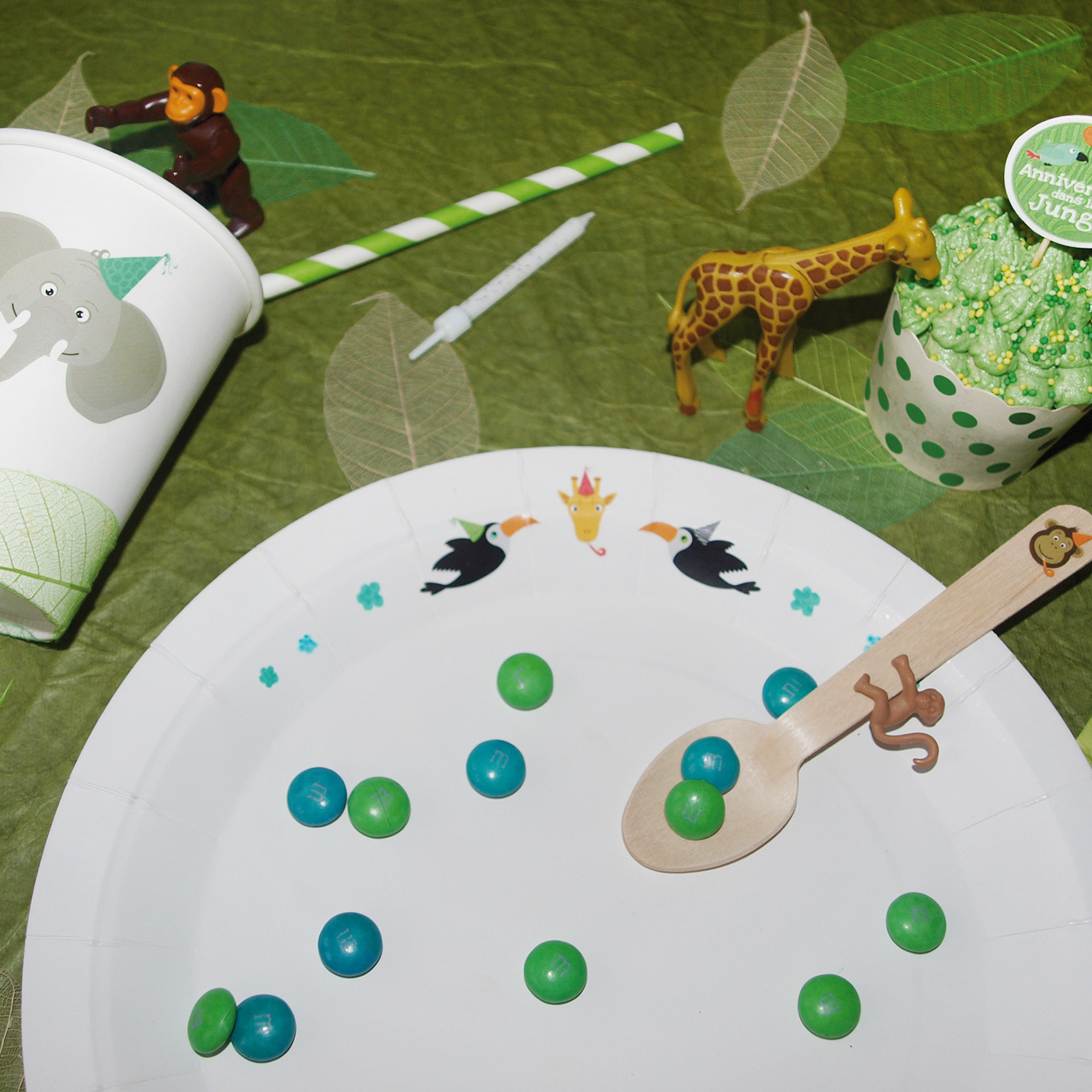 Création du concept "Décore ta Fête". L'un des 7 thèmes : Bienvenue dans la Jungle ! Kit que j'ai entièrement pensé et conçu pour customiser l'anniversaire d'un enfant.