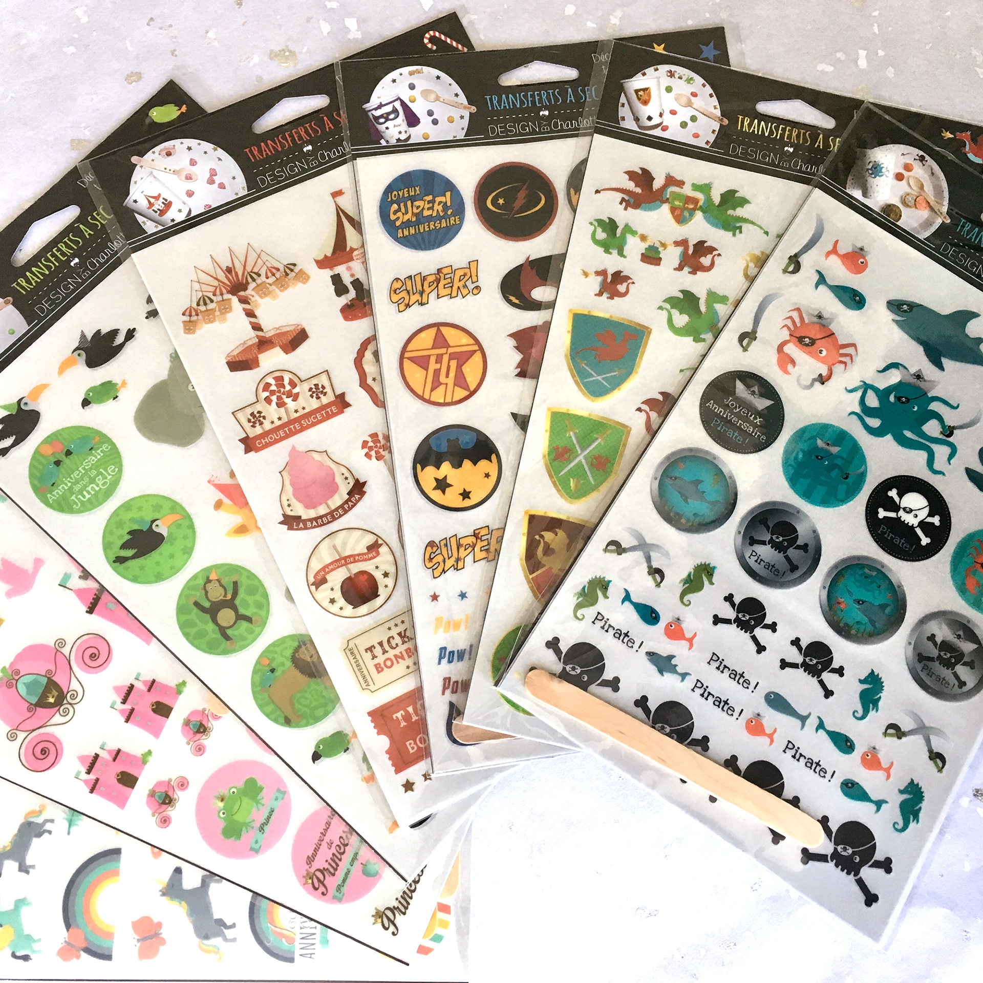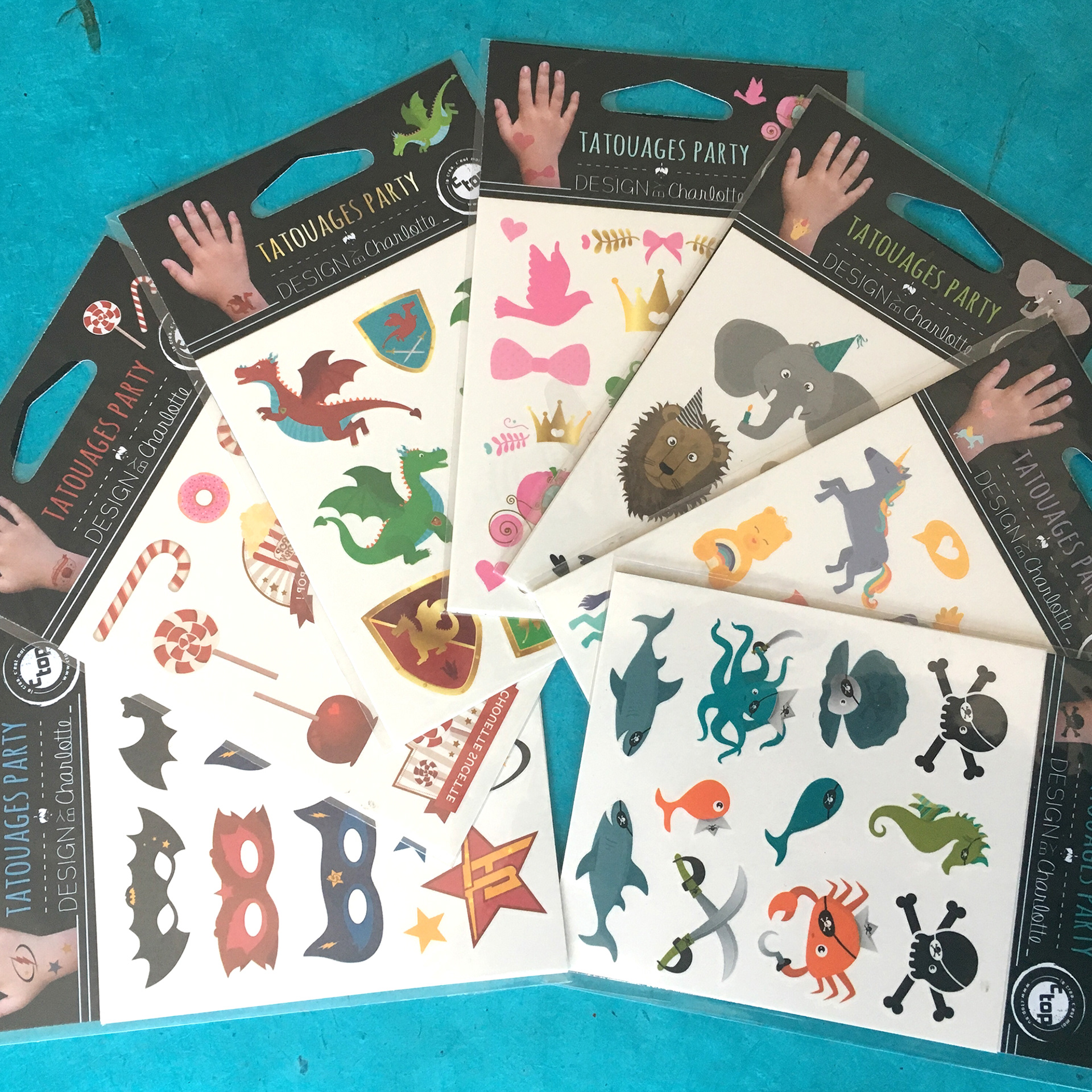 Création de 7 gammes de tatouages éphémères pour enfants et transferts à sec. Avec des illustrations impactantes pour attirer les enfants et donner envie aux parents de faire des loisirs créatifs en famille.