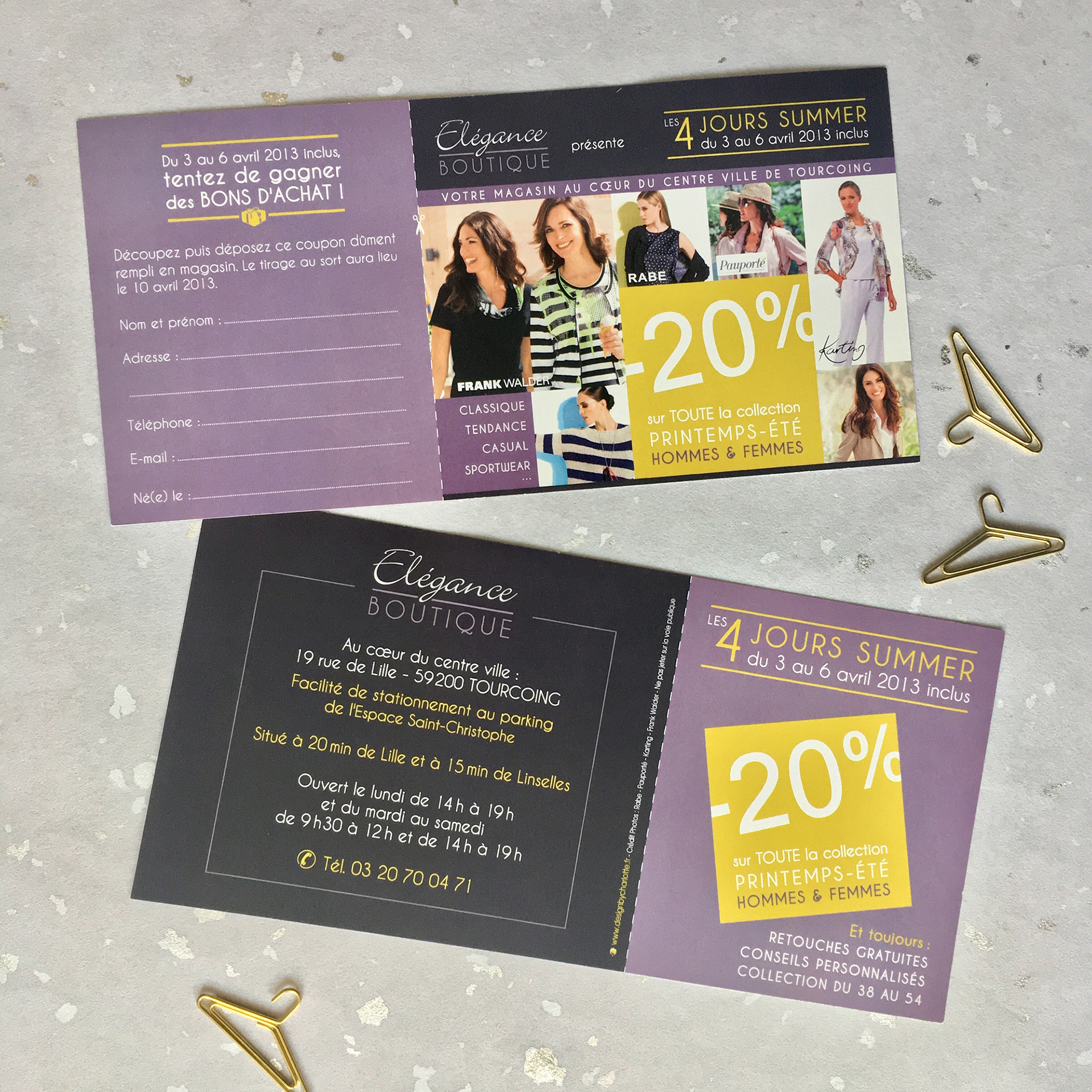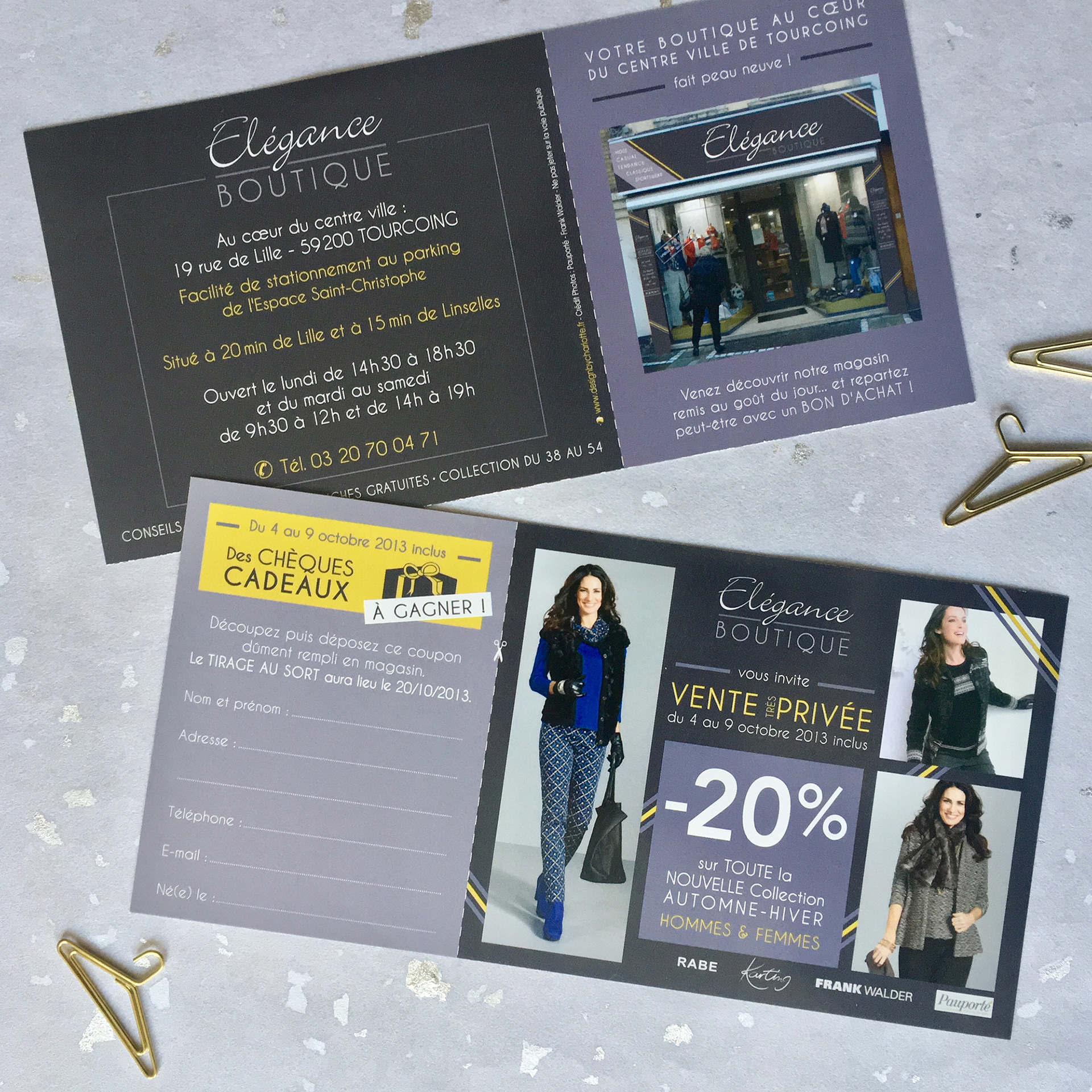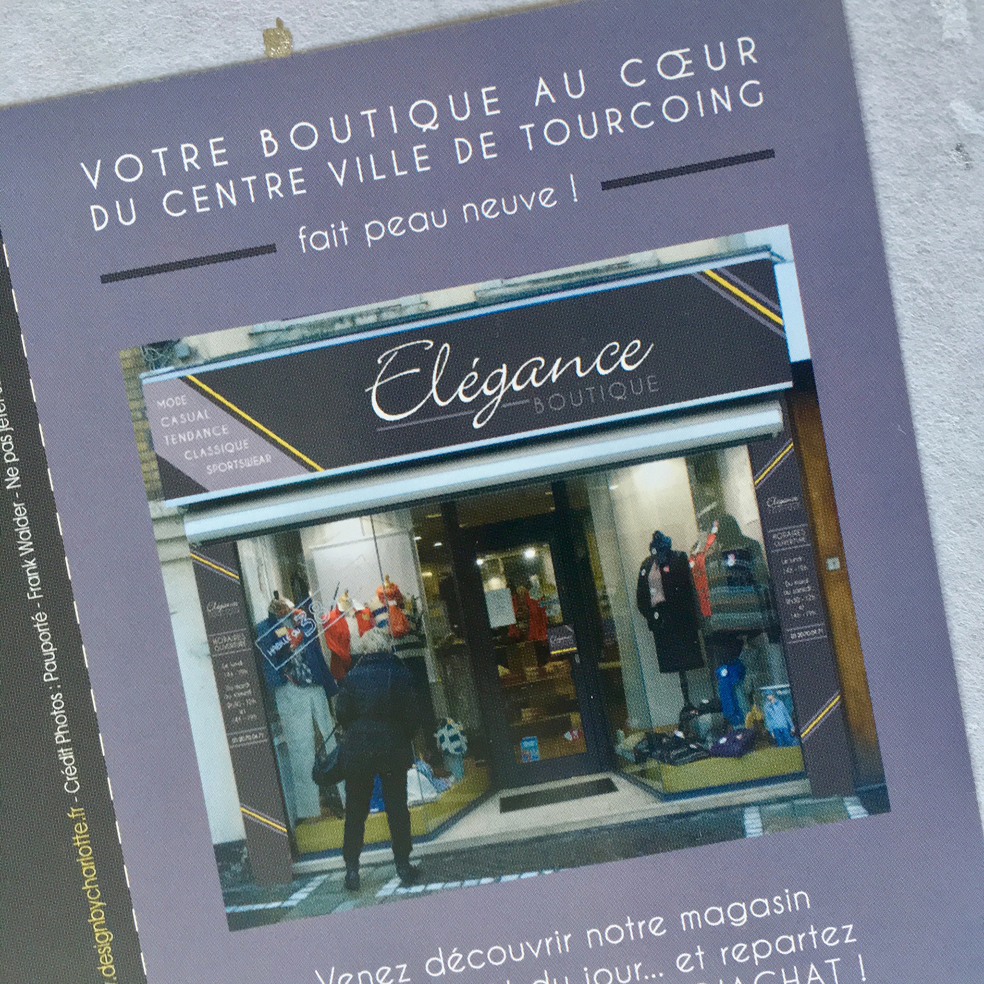 Création de l'identité visuelle, logo et flyers pour cette boutique de vêtements du centre ville de Tourcoing.