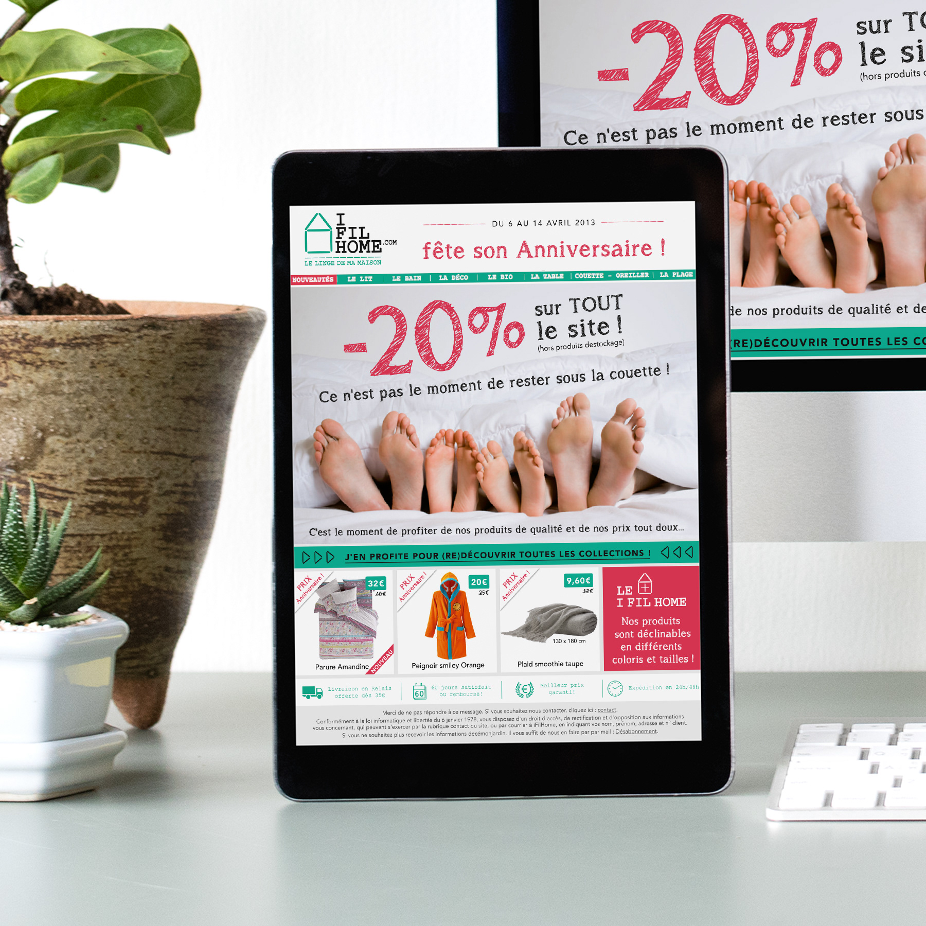 Création d'une charte graphique pour le webdesign des newsletters de cette enseigne de linge de maison.
