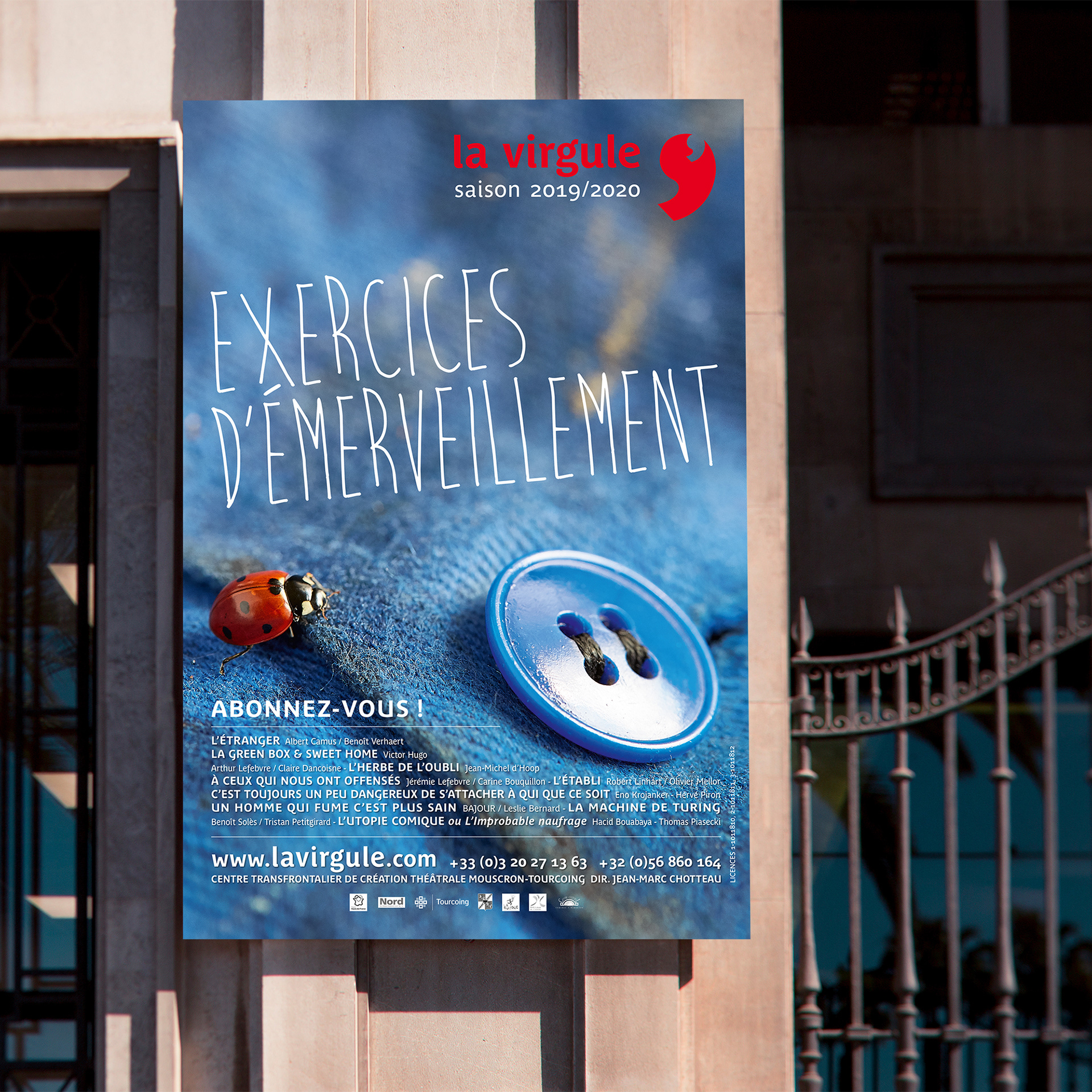Création de toute la communication de la saison 2019/2020 de ce magnifique théâtre de Tourcoing : Brochure, calicots de façade, flyers et affiches des 8 spectacles.